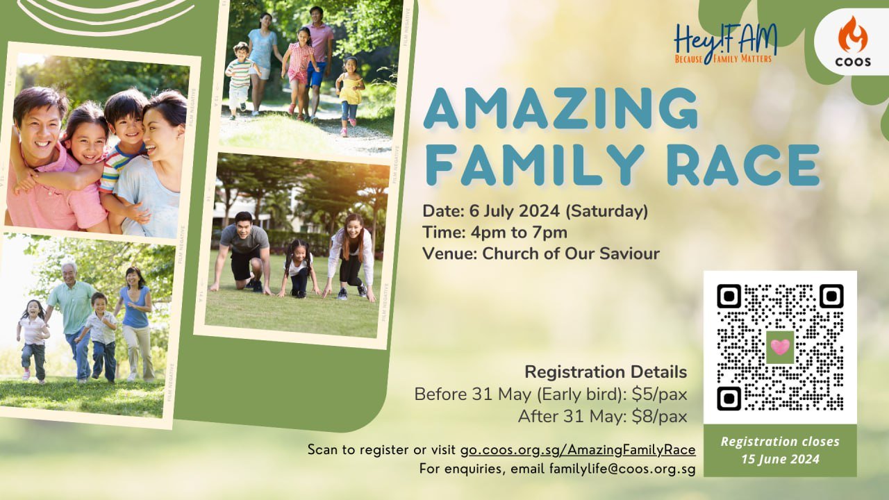 Our Family Life Ministry is organising the Amazing Family Race, an event that will include the three Fs: Families, Friends, and Fun!