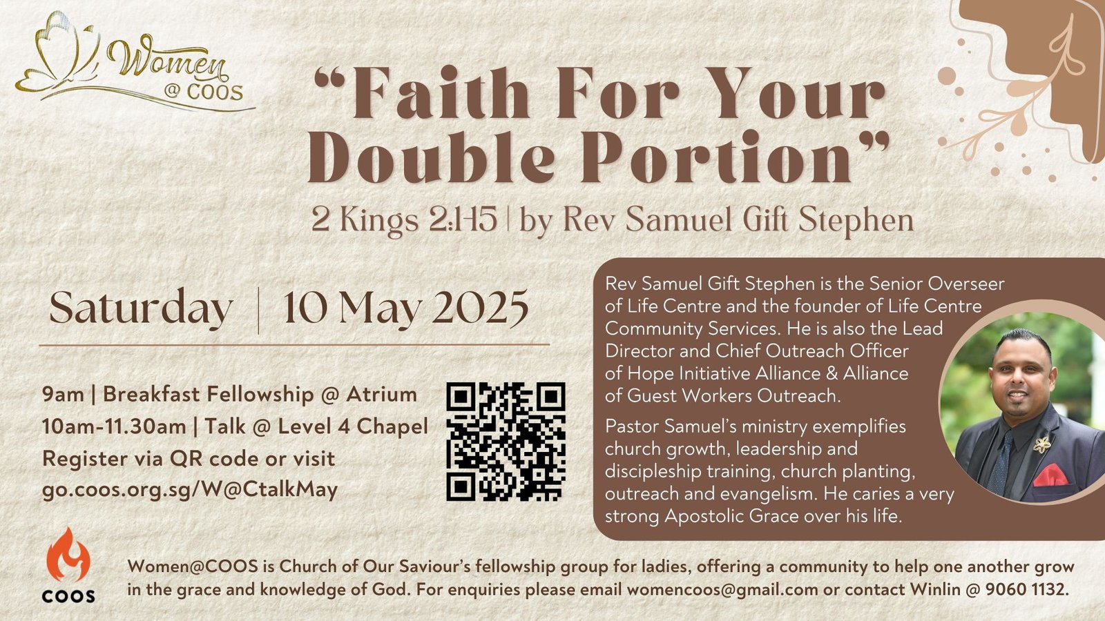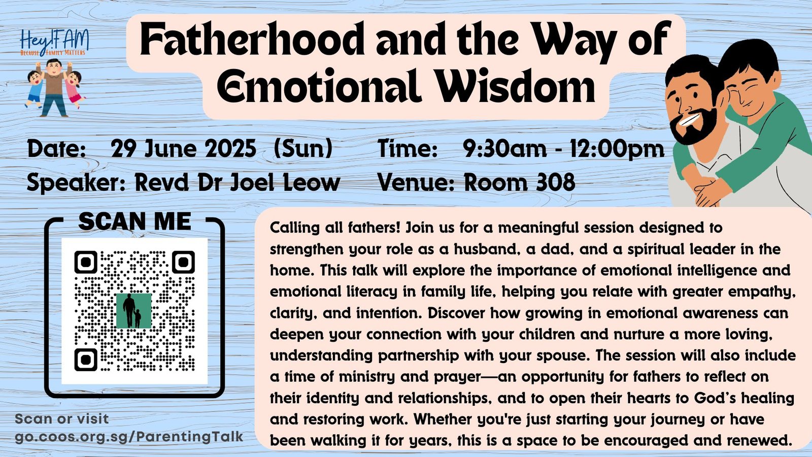 Fatherhood and the Way of Emotional Wisdom By Revd Dr Joel Leow 29 June (Sunday) | 9.30am to 12.00pm | Room 308 Calling all fathers! Join us for a meaningful session designed to strengthen your role as a husband, a dad, and a spiritual leader in the home. This talk will explore the importance […]