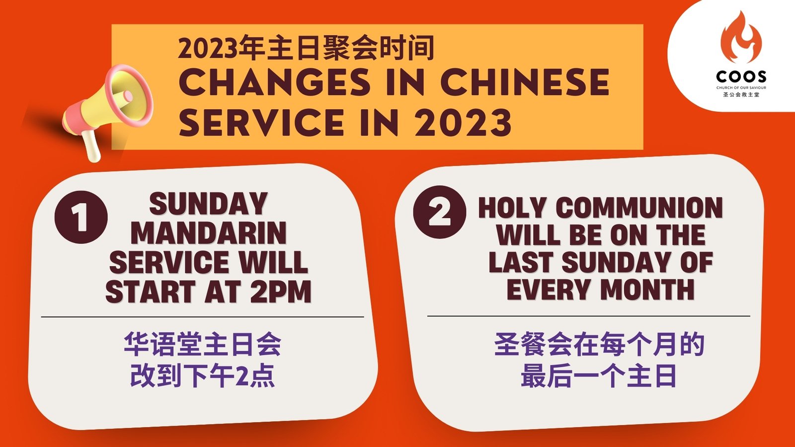 Sunday mandarin service will start at 2pm