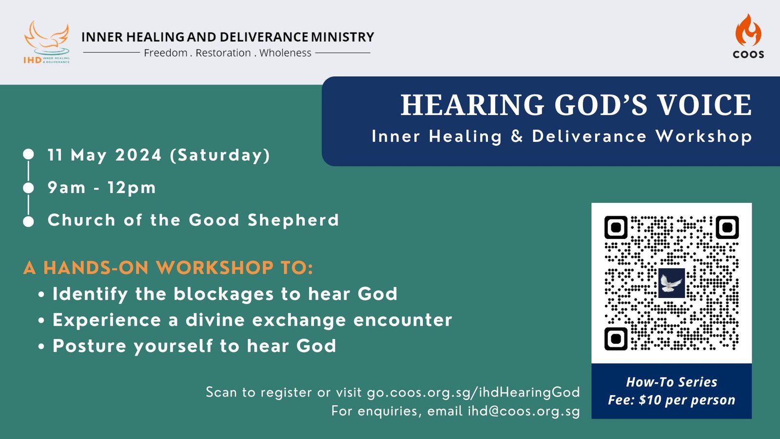 Registration is now open via the QR code or visit go.coos.org.sg/ihdHearingGod. There is a workshop fee of $10 per participant. For enquiries, email ihd@coos.org.sg.