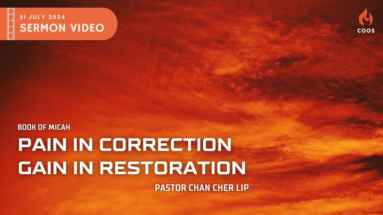 Pain in Correction, Gain in Restoration – [COOS Weekend Service – Pastor Chan Cher Lip]