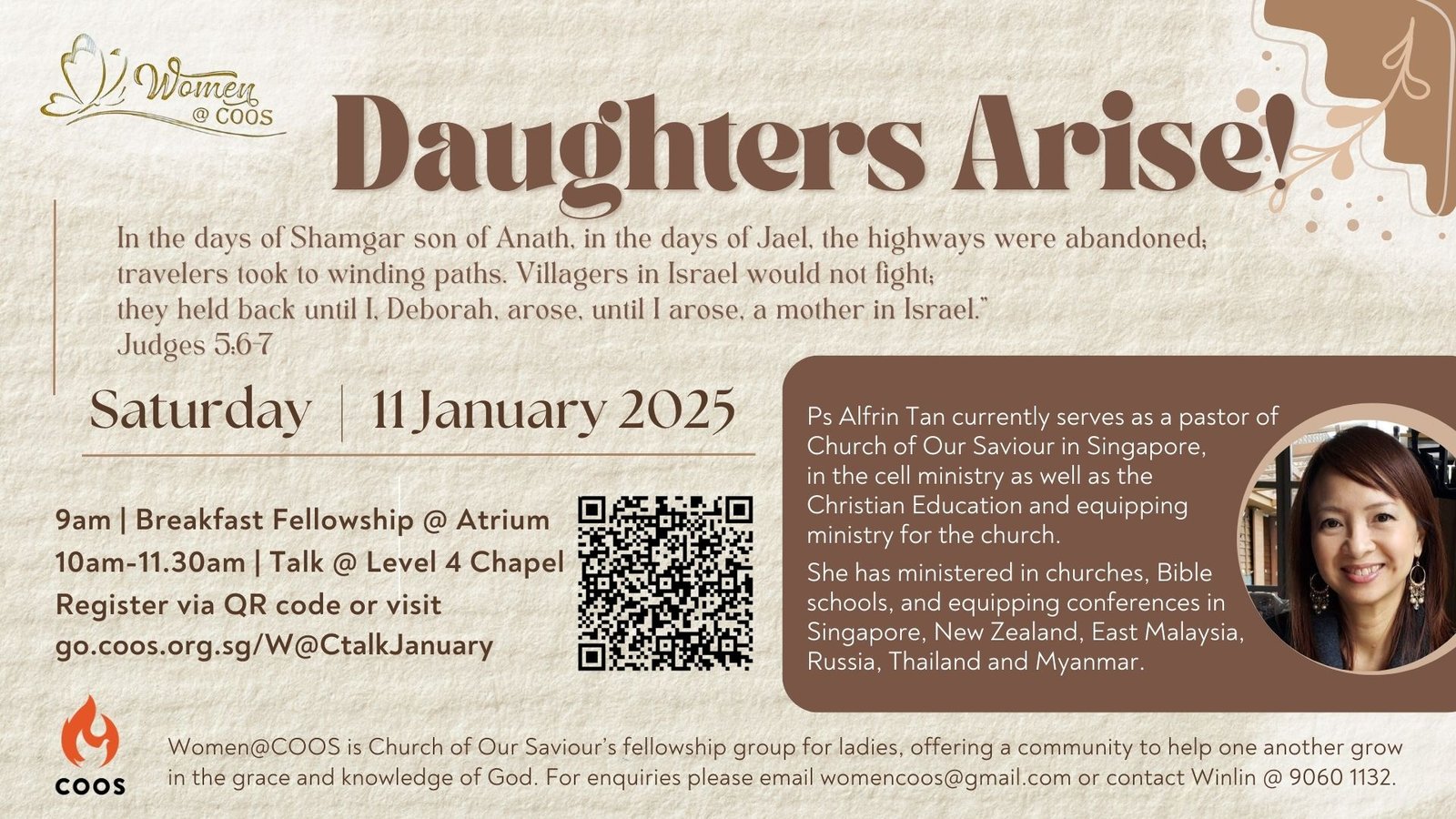Registration is required at go.coos.org.sg/W@CtalkJanuary — or via the QR code. For enquiries,s please email womencoos@gmail.com or contact Winlin @ 9060 1132.